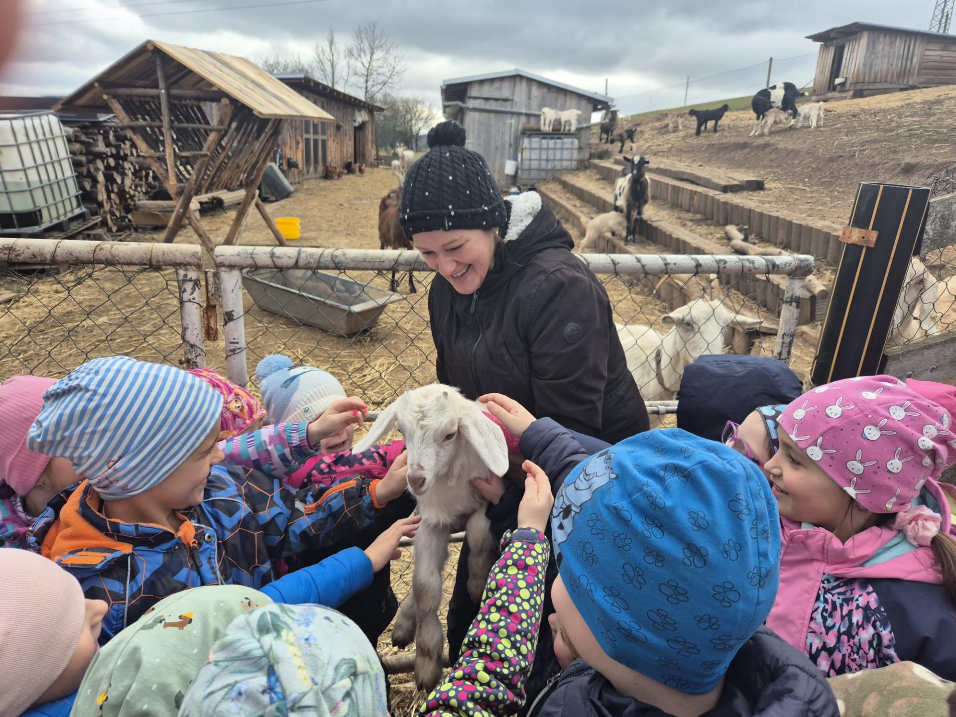 V úterý 17. března 2026 jsme navštívili malou farmu v Senticích, kde chovají kozy, ovce a slepice. Na všechno tam dohlíží milý pejsek, který měl celý dvorek pod kontrolou. Už při příchodu nás přivítala spousta zvířat, a hlavně velké množství malých kůzlátek a jehňátek.