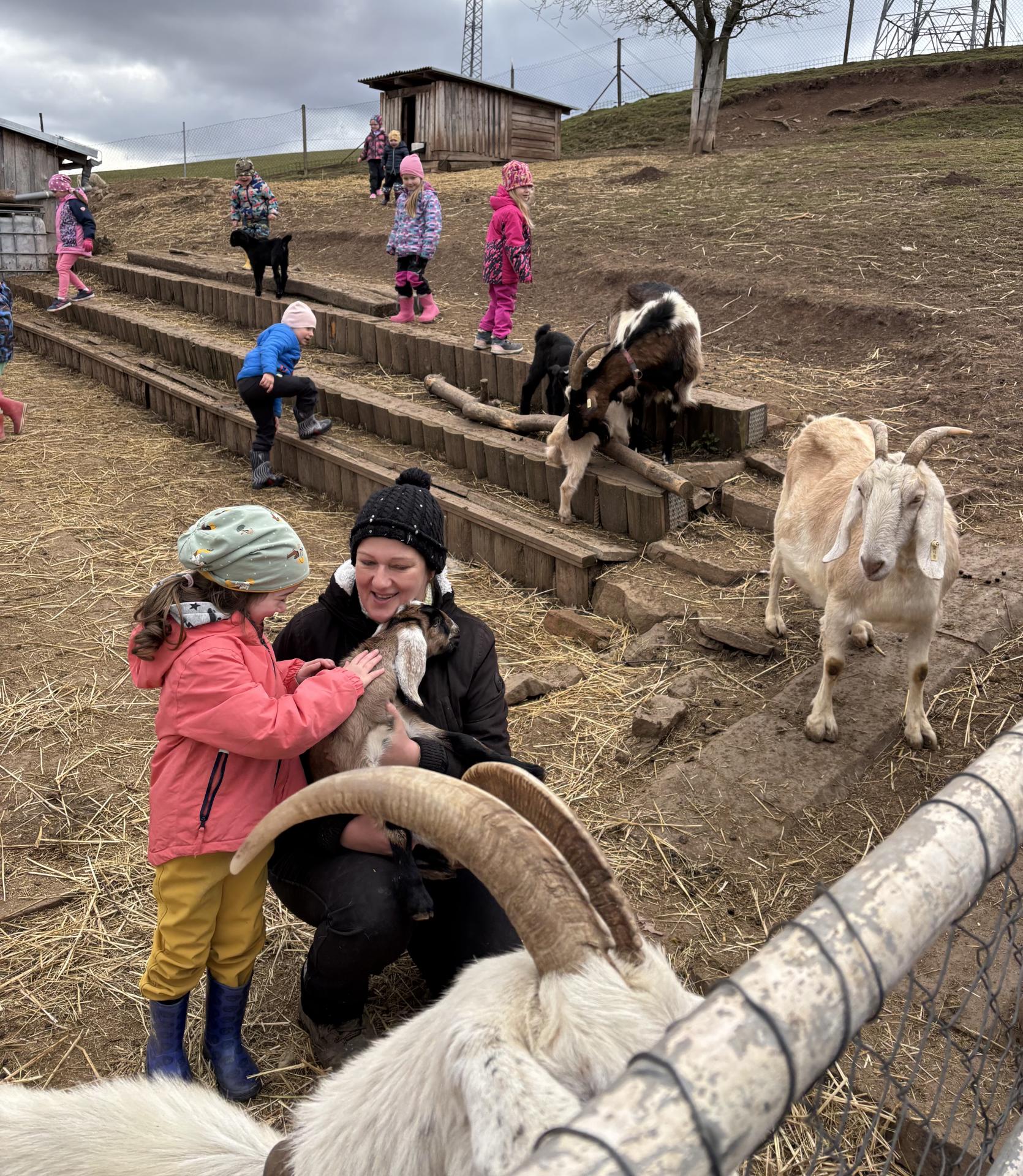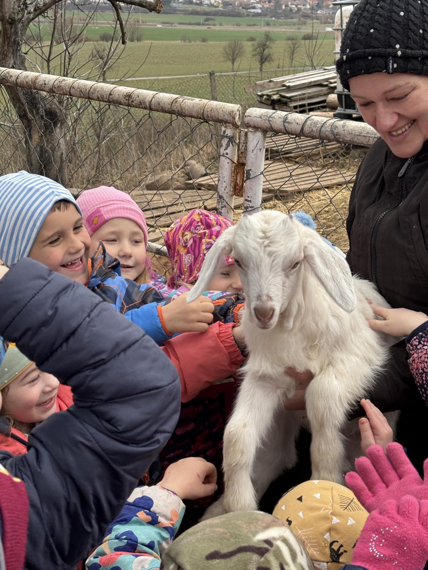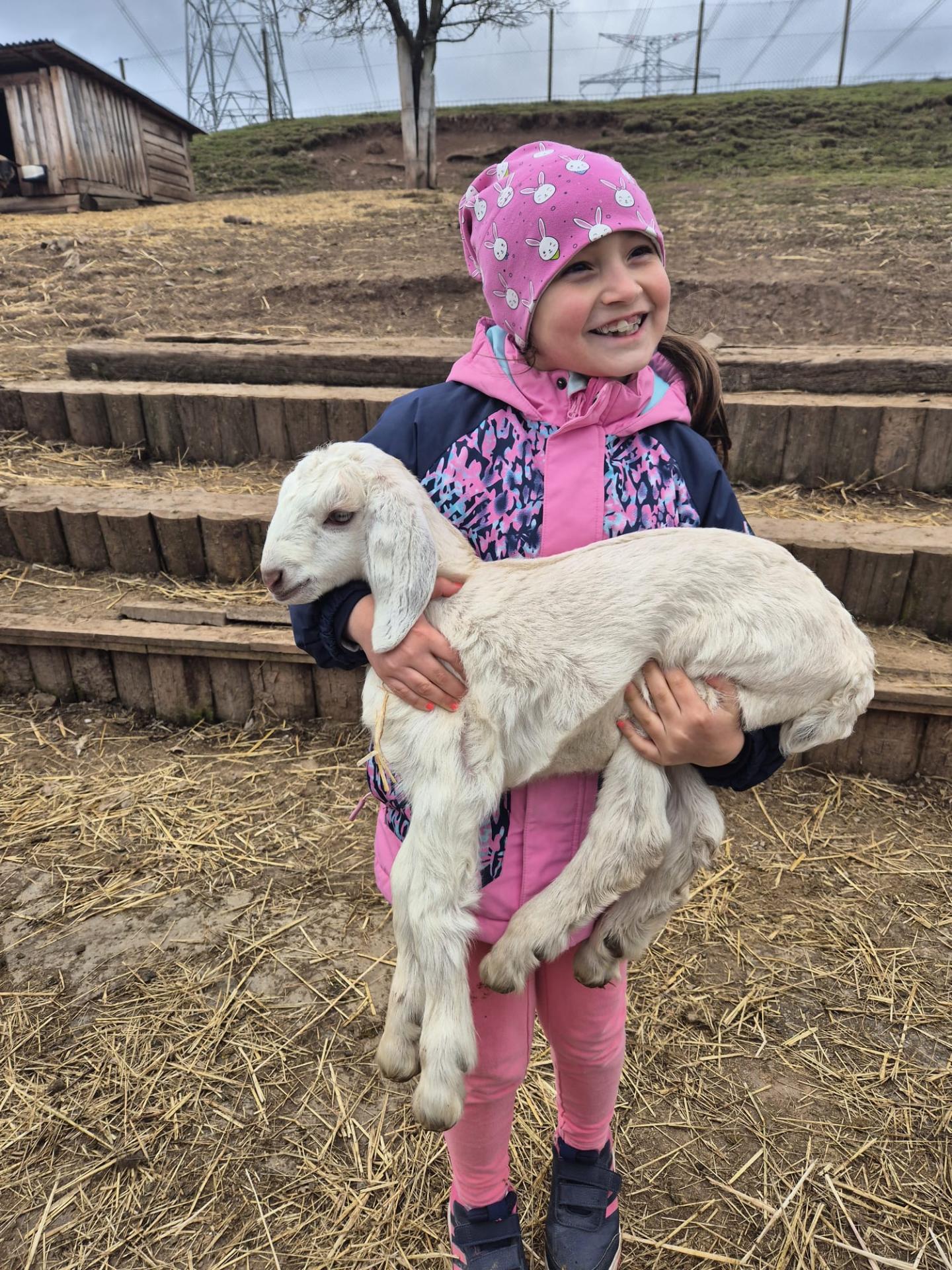 Největším zážitkem ale bylo, že jsme si mohli malá kůzlátka a jehňátka pochovat a pohladit. Byla roztomilá, hravá a vůbec se nebála. Ani velkých koz a oveček jsme se nemuseli obávat, protože byly klidné a přátelské.
