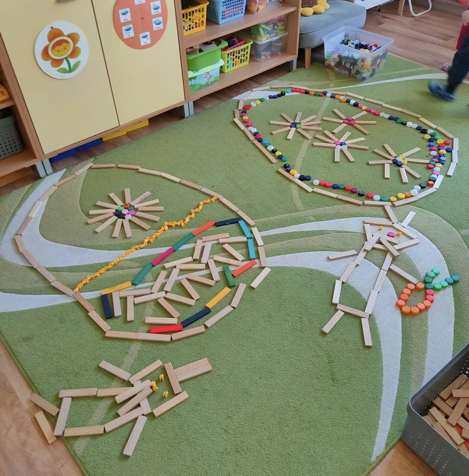 Také jsme se věnovali tvoření. Děti skládaly velikonoční vajíčka z plastových vršků a dřívek. Vznikala tak krásná barevná vajíčka, která ozdobila naši třídu a připomínala nám blížící se Velikonoce.