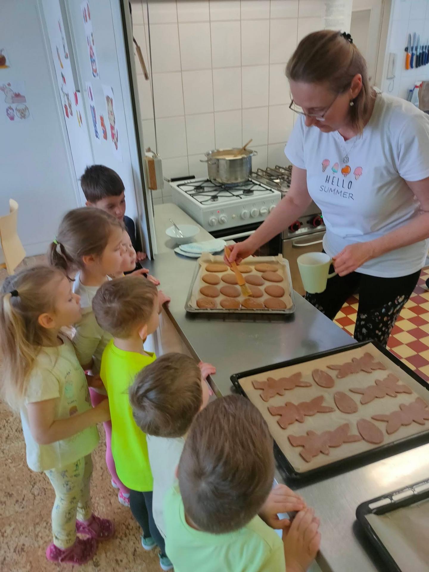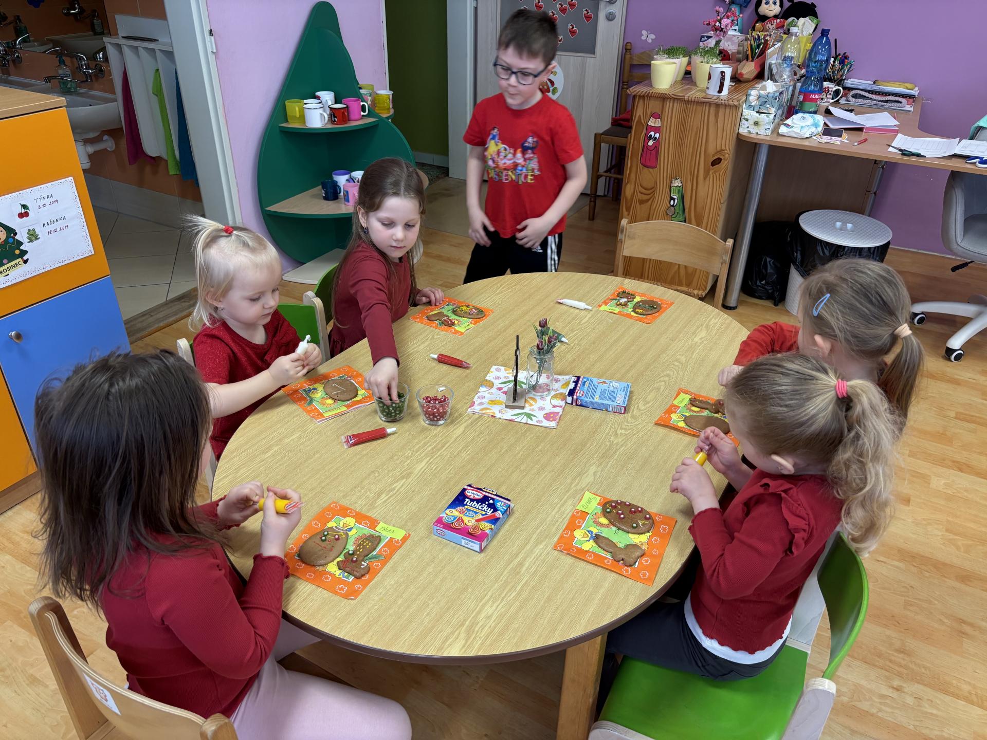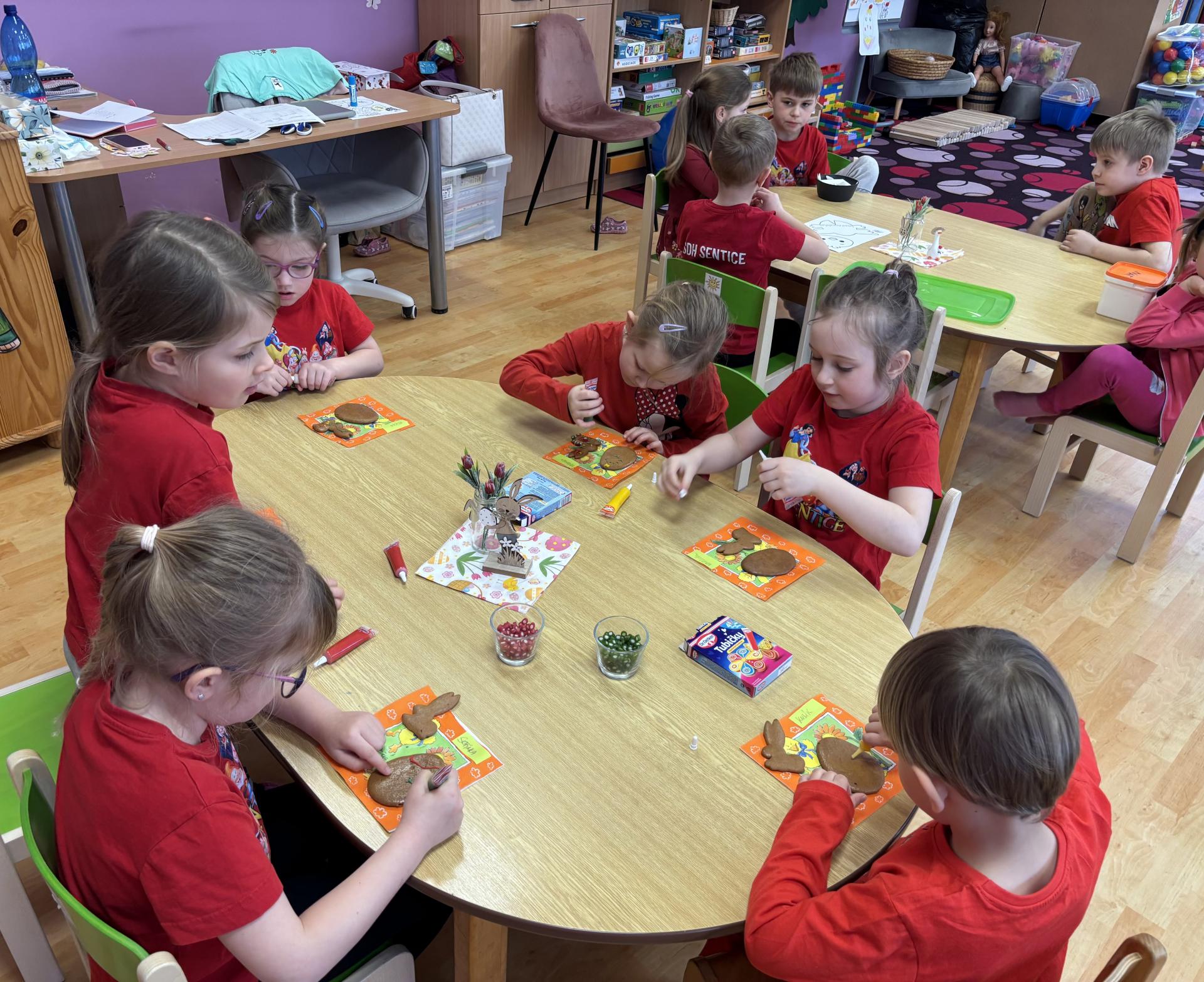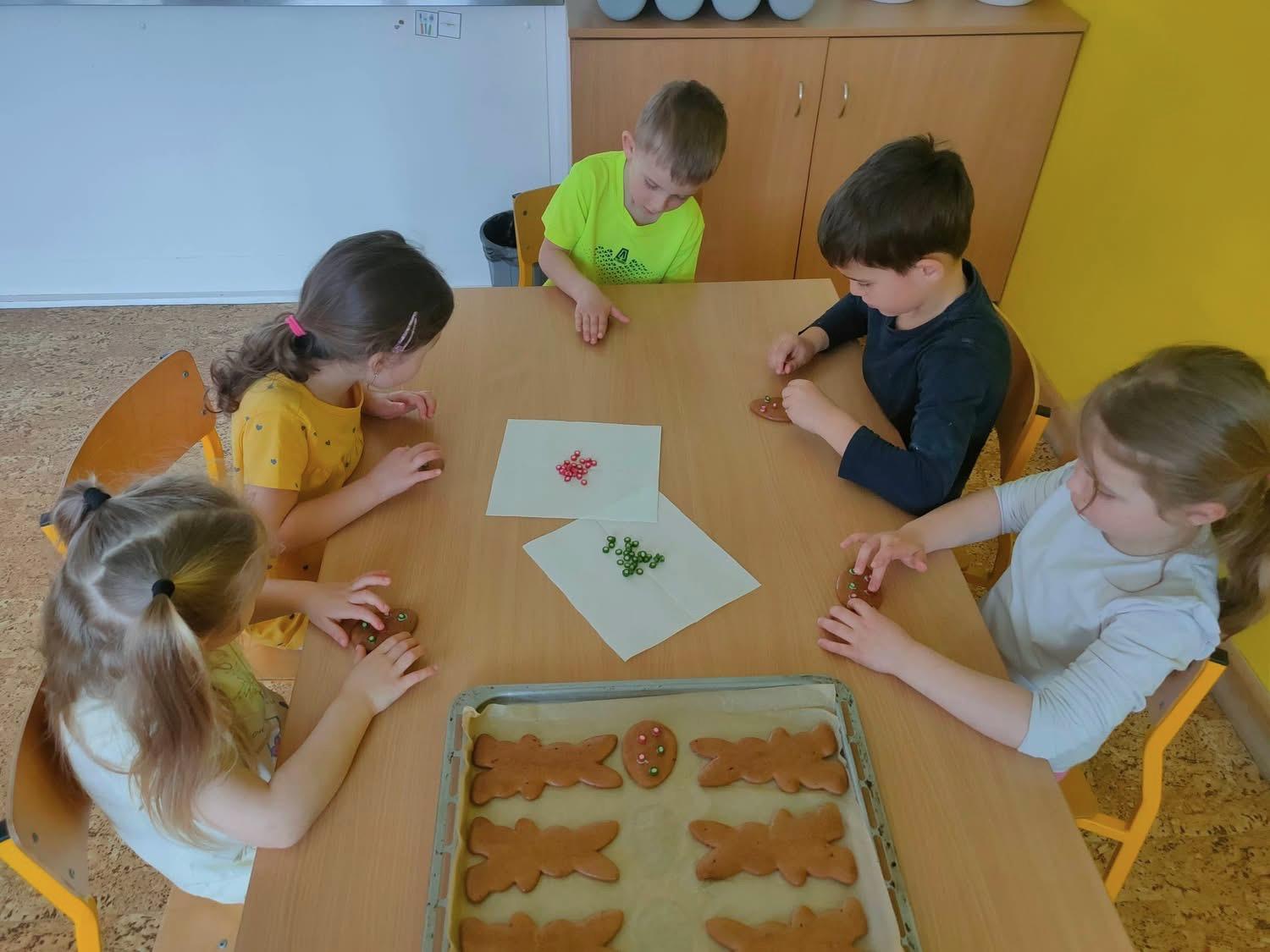 Nejprve jsme se pustili do pečení a zdobení velikonočních perníčků. Děti perníčky s radostí zdobily barevnými polevami a vytvářely nejrůznější veselé vzory. Všichni se snažili, aby jejich perníček byl co nejhezčí – a samozřejmě jsme si na nich také pochutnali.