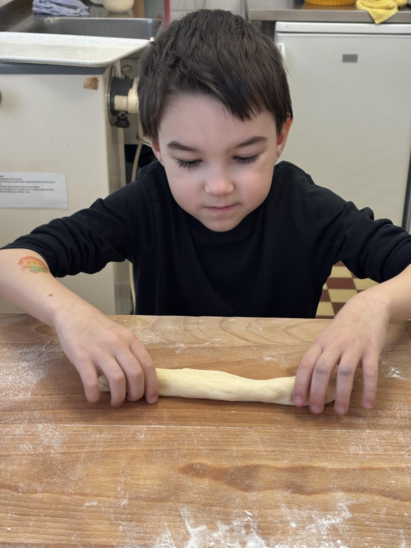 Na Škaredou středu, těsně před velikonočními prázdninami, jsme si během vyučování užili krásné velikonoční dopoledne. Společně s paní kuchařkou Ivetkou jsme si vyzkoušeli pečení tradičních jidášků. Každý z nás dostal kousek těsta, které jsme vyváleli, zasukovali do tvaru jidášků a potřeli vajíčkem.