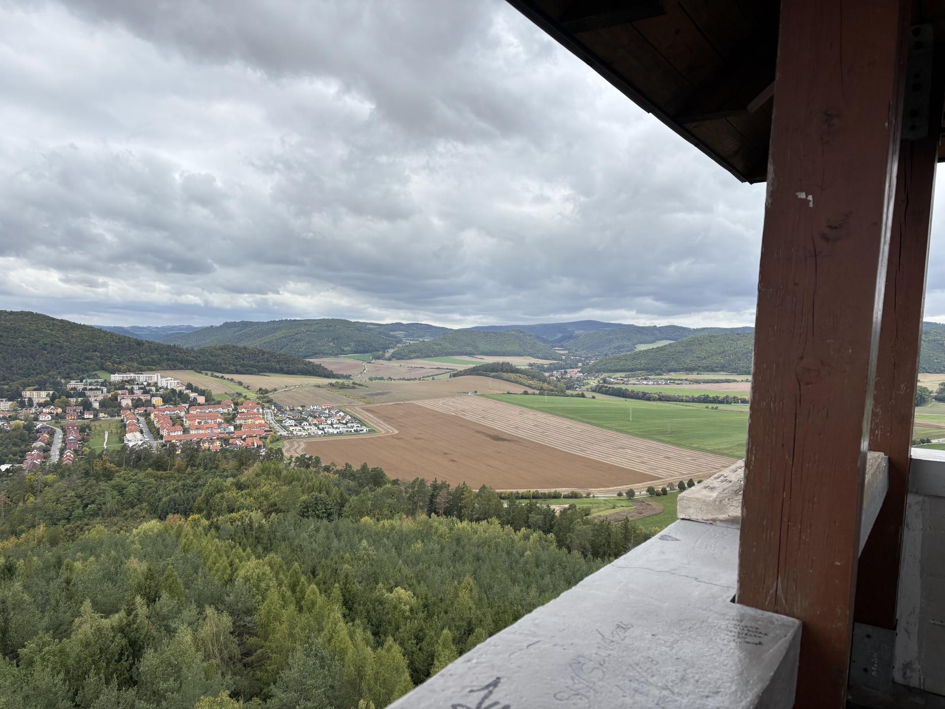 I když už některé děti bolely nožičky, všichni jsme vystoupali až na vrchol rozhledny. Odměnou nám byl krásný výhled na Tišnov a okolní krajinu, i přes zamračené počasí.